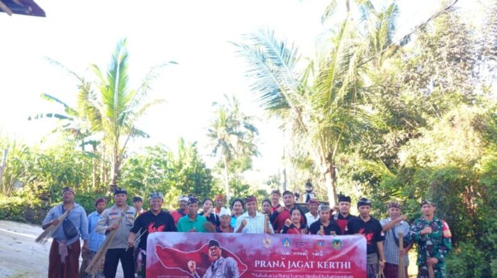 Babinsa Desa Bebandem Koramil 1623-07/Bebandem Sertu I Kadek Yulantara menghadiri kegiatan Bulan Bakti Gotong Royong Masyarakat (BBGRM) yang disinkronkan dengan kegiatan Bulan Bung Karno ke VII tahun 2025, di Pura Puseh Banjar Dinas Kastala Desa Bebandem Kec.Bebandem Kab.Karangasem, pada Kamis (05/06/25).