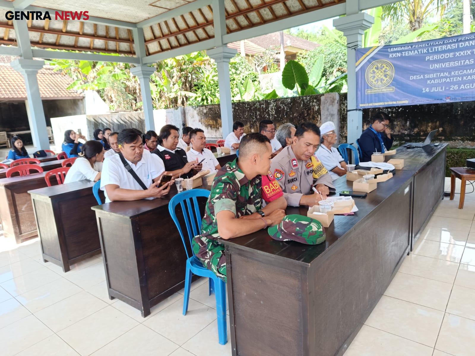 Turut hadir dalam kegiatan tersebut Perbekel Desa Sibetan, Kelian Adat Desa Sibetan, Dosen pembimbing KKN Unud, Ketua BPD, Ketua LPM, Mahasiswa KKN Unud, Babinsa Desa Sibetan, Bhabinkamtibmas serta Kawil se-Desa Sibetan.