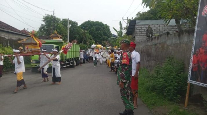 Gentra.co.id Bali – Babinsa Desa Kubu Koramil 1623-08/Kubu Serma I Nyoman Dana bersama Pecalang Desa Adat Kubu melaksanakan pengamanan upacara Melasti Pura Puseh Kubu Juntal yang merupakan rangkaian hari raya Nyepi Saka 1947 tahun 2025.