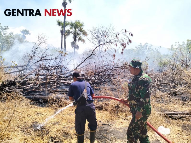 Gentra News Bali – Babinsa 1623-08/Kubu Desa Sukedana Serka I Gede Putu Basma bersama warga padamkan api kebakaran lahan di Dsn.Tigaron, Ds.Sukedana, Kec.Kubu, Kab.Karangasem, pada Jumat sore (11/10/24)