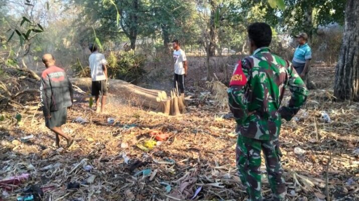 NTT-KUPANG, – Babinsa Bioba Baru Posramil Manubelon Koramil 1604-03/Naikliu, Serka Lodian Wila Radja bersama warga masyarakat melaksanakan kegiatan bakti sosial pembersihan dahan dan ranting pohon yang tumbang akibat angin kencang di wilayah RT 06 Dusun 1 Desa Bioba Baru, Kecamatan Amfoang Barat Daya, Kabupaten Kupang. Kegiatan ini dilakukan sebagai bentuk kepedulian Babinsa terhadap keselamatan dan kenyamanan warga di wilayah binaannya. Kamis (04/09/2025).