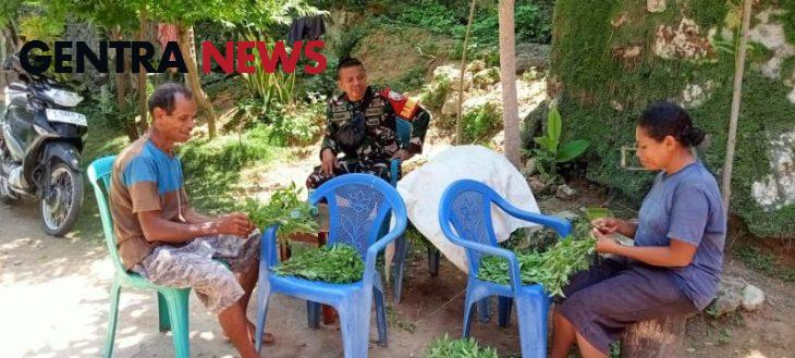 Gentra News NTT – Kupang – Babinsa Kelurahan Bakunase Koramil 1604-01/Kota, Serda La Dane, melaksanakan komunikasi sosial (Komsos) dengan warga setempat, Bapak Tus Benu, untuk membahas kondisi panen sayur-mayur, khususnya daun kemangi. Pertemuan ini berlangsung di RT 013/RW 005, Kelurahan Bakunase, Kecamatan Kota Raja, Kota Kupang. Senin (16/09/2024).