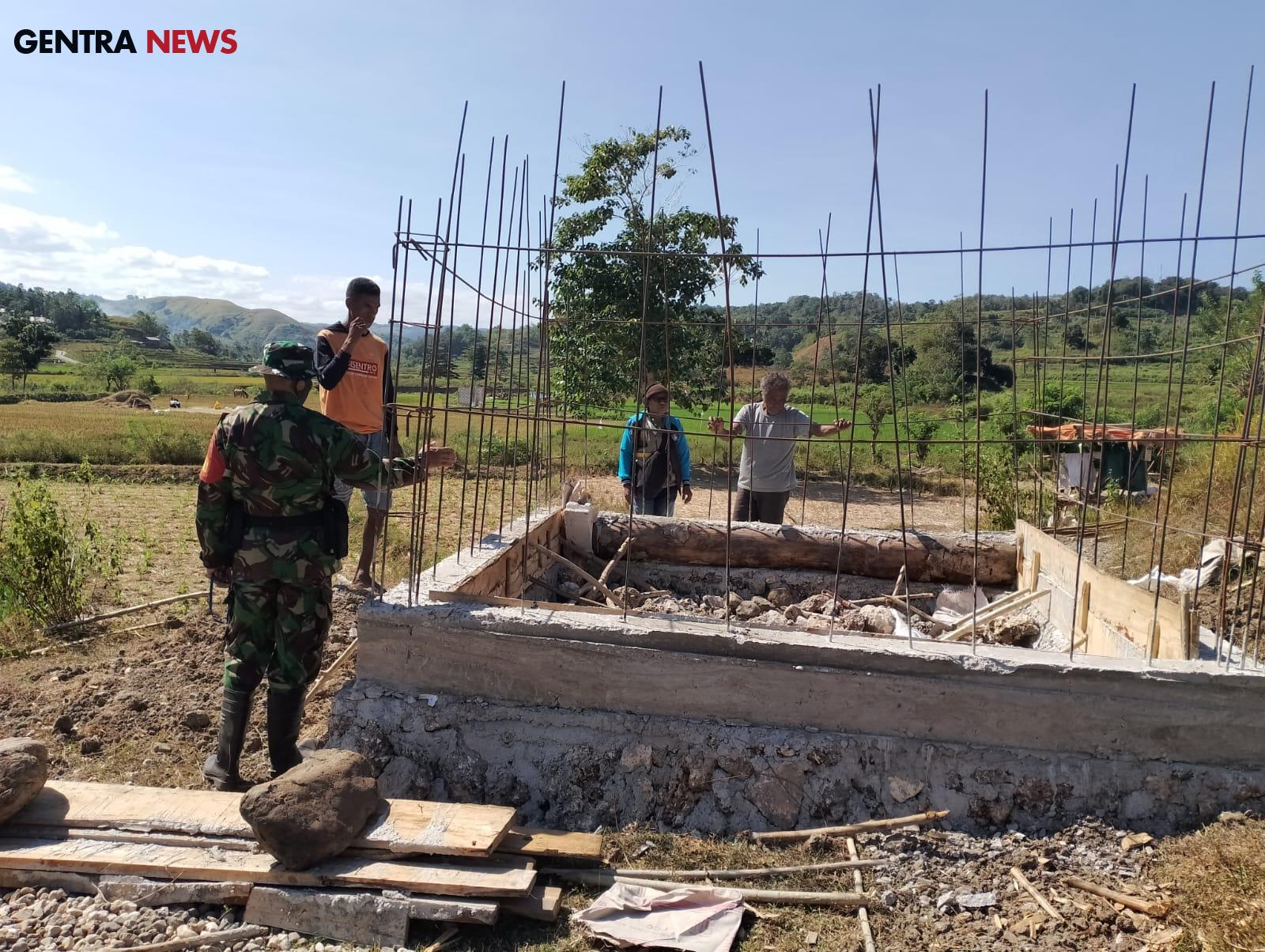 Gentra News NTT – SUMBA BARAT, Babinsa Koramil 02/Walakaka Kodim 1613/Sumba Barat Serka Muslih bantu warga masyarakat buat bak penampungan air di Desa Welibo Kec. Lamboya Kab. Sumba Barat, Selasa (02/7/2024).