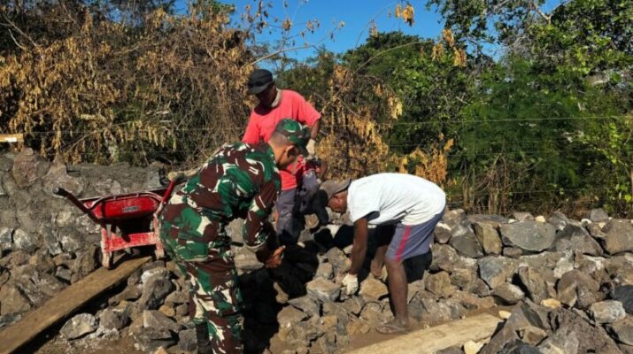 Flotim – Guna terciptanya sinergitas dan kemanunggalan TNI bersama Rakyat, Babinsa Koramil 1624-02/Adonara Pratu Halarius Tanjong Siong melaksanakan karya bakti. Bentuk kegiatan membantu pembuatan pondasi pembangunan rumah milik warga binaan di Desa Kolimasang, Kecamatan Adonara, Kabupaten Flotim, Selasa (10/06/2025).