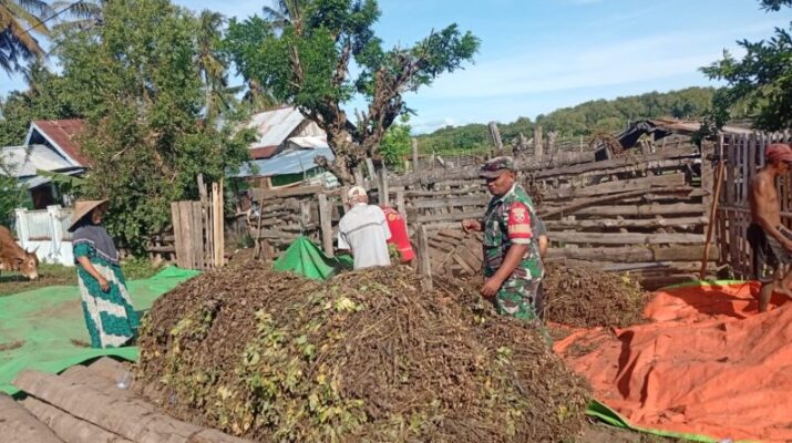 Setelah berdialog dengan warga, Babinsa melanjutkan kegiatan dengan turut membantu proses perontokan kacang milik warga setempat. Kegiatan ini menjadi bukti nyata komitmen TNI dalam hadir dan bekerja bersama masyarakat, tidak hanya dalam aspek keamanan namun juga mendukung produktivitas pertanian.