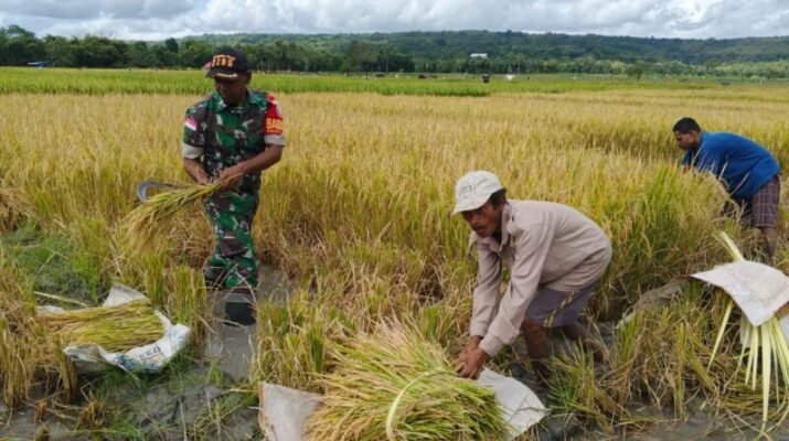 ” kami sangat terbantu dengan kehadiran Babinsa, selain tenaga tambahan mereka juga memberikan semangat bagi kami di tengah cuaca yang tidak menentu ini “, Ungkap Bapak Blasius Humuen pemilik lahan sawah yang ikut panen hari itu.