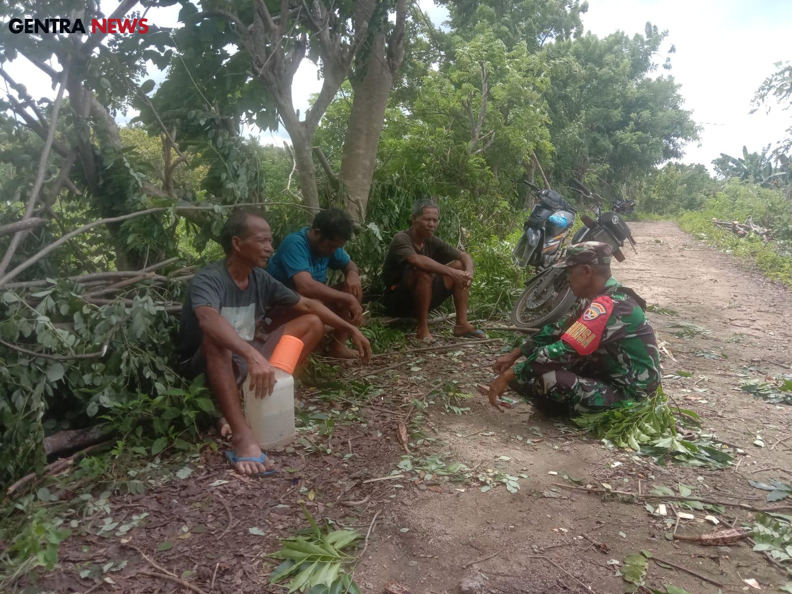 Babinsa Bersama Masyarakat Bersihkan Ranting Pohon yang Menutupi Jalan