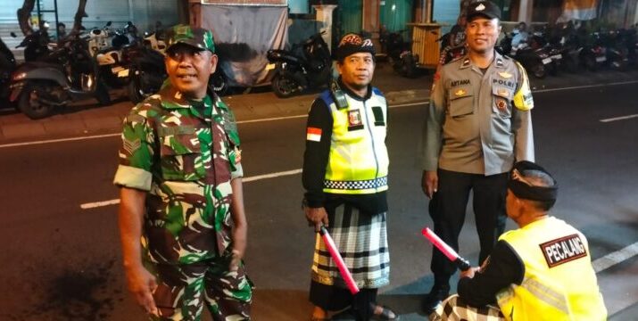 Babinsa Bersama Pecalang Jaga Ketertiban Bazar Mini Desa Belega
