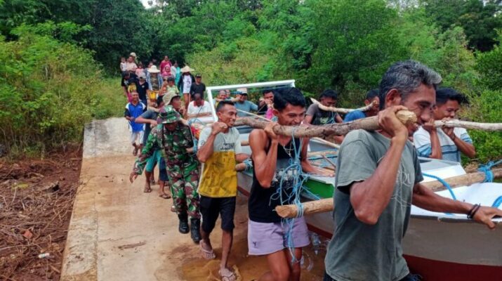 Gentra.co.id –NTT Rote Ndao Babinsa Sertu Anderson Telusa Koramil 02/Pantai Baru Kodim 1627/Rote Ndao, Menyempatkan diri untuk bersama -sama ikut membantu warga binaanya yang sedang menurunkan perahu yang bertempat di Dusun Selesai Desa Lifuleo kecamatan Rote Timur kabupaten Rote Ndao, Minggu , (4/5/2025).