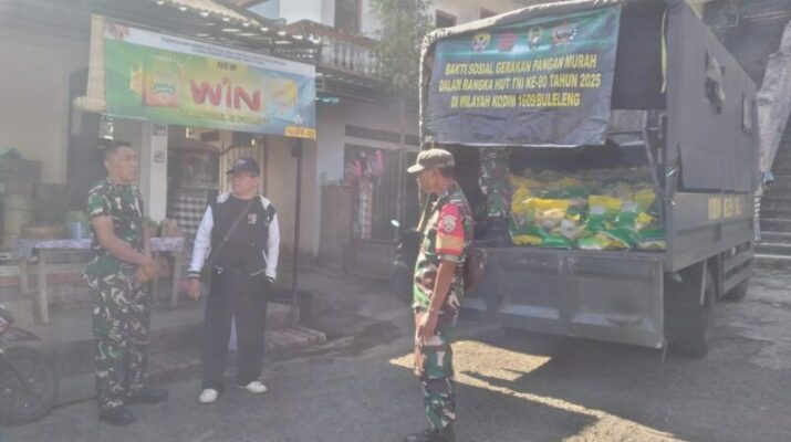 Sawan, 3 Oktober 2025 – Babinsa Desa Lemukih, Sertu Adolfo Barreto, melaksanakan pendampingan kegiatan Gerakan Pangan Murah Kodim 1609/Buleleng yang berlangsung pada hari Jumat, pukul 09.20 Wita, bertempat di depan Pura Desa, Desa Lemukih, Kecamatan Sawan, Kabupaten Buleleng.