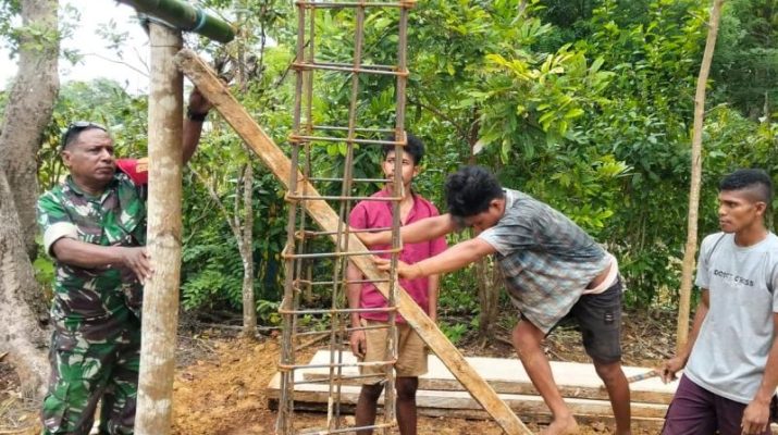 Gentra.co.id NTT – SUMBA BARAT – Babinsa Koramil 02/Walakaka Kodim 1613/Sumba Barat Serka Deniz Magno mendampingi pengerjaan bak penampung air sumur bor di Desa Pahola Kec. Wanukaka Kab. Sumba Barat, Kamis (02/01/2025).
