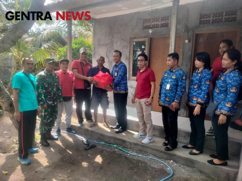 Gentra News Bali – GIANYAR- Bertempat di rumah Warga KK Ekstrim : I Made Adnyana, 55 Th, Banjar Pegesangan Desa Temesi Kec.Kab/Gianyar Babinsa Desa Temesi Koramil 1616 -01/Giayar Sertu Wayan Suardika bersama perangkat Desa Temesi melaksanakan Pendampingan kegiatan Penyerahan Paket sembako dari Disperindag Kab.Gianyar.Jumat (29/11/24)
