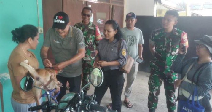 Gentra.co.id NTT – NTT Kupang – Babinsa Koramil 1604-01/Kota, Sertu Yunus Koro, Sertu Soleman Misa, serta Serda Putu Juni Arsana yang tergabung dalam tim vaksinasi rabies bersama Ibu Lurah Nefo Naek, Petugas Keswan Peternakan Provinsi NTT, Petugas Keswan Peternakan Kota Kupang, Sekretaris Lurah Nefonaek, Ketua LPM, dan Staf Kelurahan Kelurahan melaksanaan vaksinasi rabies untuk anjing di Kel. Nefonaek, Kecamatan Kelapa Kota Lama, Kota Kupang. Selasa (29/01/2025).