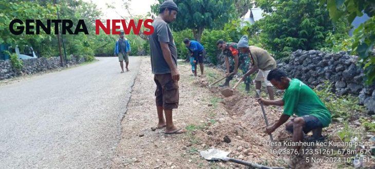 Gentra News NTT – Kupang – Babinsa Kuenheun Koramil 1604-06/Batakte, Sertu Ruben AT, bersama kelompok teknisi desa melaksanakan kegiatan karya bakti penggalian jalur pipa untuk instalasi air bersih di wilayah Dusun 01, Desa Kuanheun, Kecamatan Kupang Barat, Kabupaten Kupang. Kegiatan ini bertujuan untuk mendukung akses air bersih bagi masyarakat setempat, yang selama ini masih terbatas. Selasa (05/11/2024).