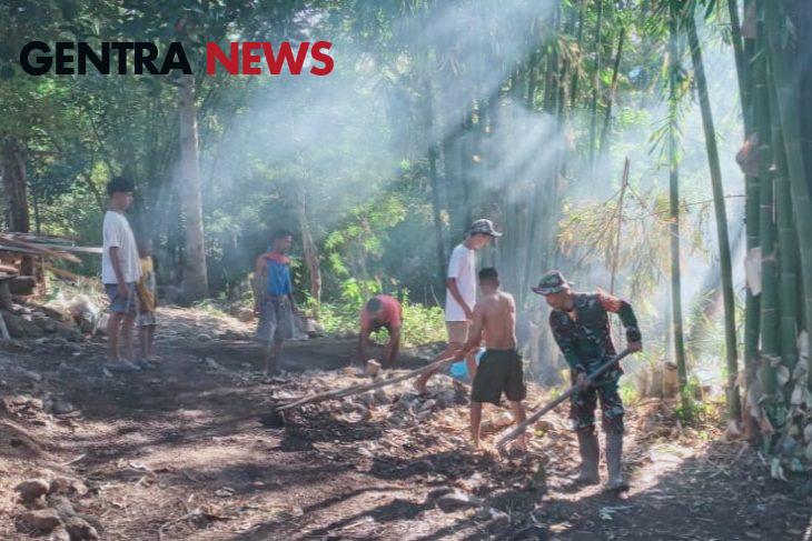 Gentra News NTT – KODIM 1605/BELU, Peduli dengan kebersihan dan kesehatan lingkungan, Babinsa Koramil 1605-06/Halilulik Serda Jayusman Kiang bergotong royong bersama masyarakat membersihkan sampah di Dusun Motamauk, Desa Mandeu Kecamatan Raimanuk, Kabupaten Belu NTT, Rabu (10/7/2024).