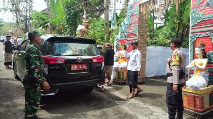 Babinsa Desa Duda Utara Peltu I Kadek Suadnyana mengungkapkan “kami bersinergi dengan Bhabinkamtibmas dan Pecalang Desa Adat Geriana Kauh melaksanakan pengamanan upacara keagamaan, ucapnya.