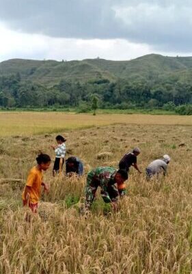 “Sebagai aparat teritorial, kami turut terjun langsung ke sawah membantu petani saat panen. Dengan menggunakan alat tradisional seperti sabit, kami berupaya meringankan beban petani serta memberi motivasi agar tetap semangat dalam bertani,” ujarnya.