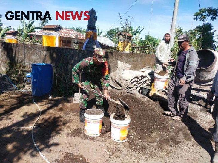 Gentra News Bali, Bangli – Serka Wayan Suastika, Babinsa Koramil 04/Kintamani Kodim 1626/Bangli, turut berpartisipasi dalam karya bakti pembangunan jalan rabat beton di Banjar Wanasari Desa Kintamani, Kecamatan Kintamani, Kabupaten Bangli. Rabu (2/10/24),