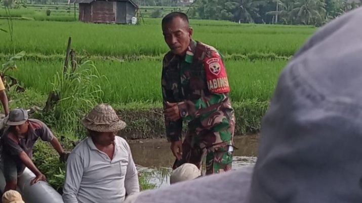 Babinsa Desa Kukuh Bersama Warga Gotong Royong Perbaiki Saluran Irigasi Tersier yang Jebol