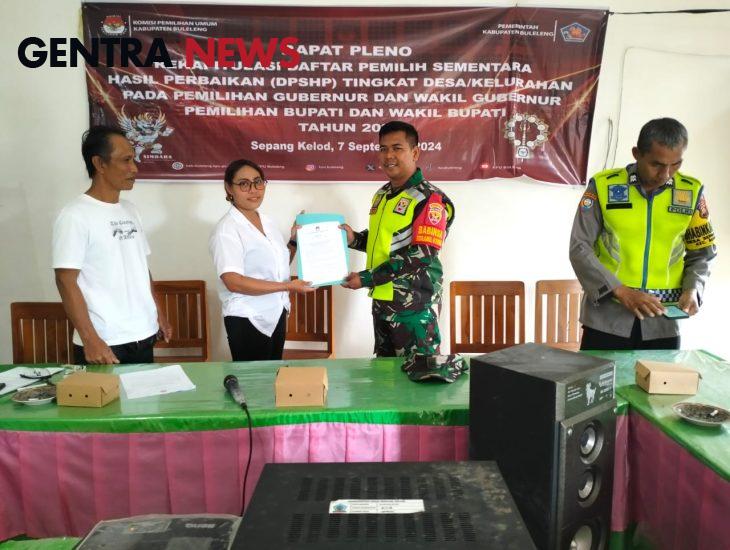 Bertempat di Kantor Desa Sepang Kelod. Babinsa Sepang Kelod an Serda Kadek Nova Juliana bersama Bhabinkamtibmas Desa Sepang Kelod Aiptu Komang Sumariawan menghadiri undangan Rapat Pleno Rekapitulasi Daftar Pemilih Sementara Hasil Perbaikan (DPSHP) tingkat Desa pada Pemilihan Gubernur dan Wakil Gubernur, Bupati dan Wakil Bupati Tahun 2024.