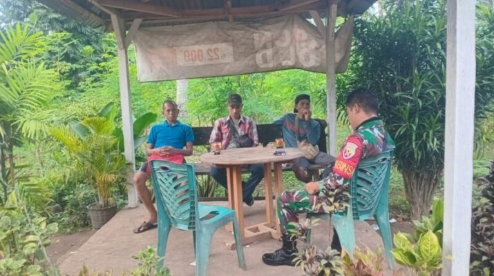 Flores Timur – Babinsa Koramil 1624-06/Wulanggitang, Praka Huzaer, melaksanakan monitoring wilayah dan komunikasi sosial (Komsos) di Desa Tuakepa, Kecamatan Titehena, Kabupaten Flores Timur.