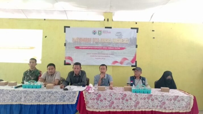 ‎NTB — Sumbawa, Dalam rangka mendukung percepatan pembentukan Koperasi Merah Putih sebagai bagian dari program strategis nasional pemberdayaan ekonomi rakyat, Babinsa Desa Sampe Koramil 1607-09/Utan, Serda Asturiyanto, menghadiri Musyawarah Desa Khusus (Musdesus) yang dilaksanakan di Aula Kantor Desa Sampe, Kecamatan Rhee, Kabupaten Sumbawa, pada Jumat (2/5/2025).