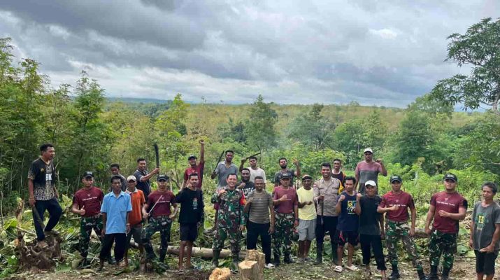 Gentra News NTT – KODIM 1605/BELU, Sertu Melky Michael Babinsa Tulakadi Koramil 1605-07/Wedomu ikut melaksanakan kegiatan karya bakti bersama masyarakat di lahan Desa Tulakadi, Kecamatan Tasifeto Timur, Kabupaten Belu, Jumat (17/1/2025).