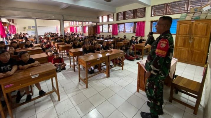 BADUNG – Babinsa Kelurahan Jimbaran Koramil 1611-08/Kuta Selatan Kodim 1611/Badung Koptu Bambang memberian materi kepada Siswa/siswi SDN 6 Jimbaran tentang bahaya Bullying dan tindakan kekerasan terhadap anak dilingkungan sekolah bertempat di Ruang Kelas SDN 6 Jimbaran Jln. By Pass Nusa Dua Kelurahan Jimbaran Kecamatan Kuta Selatan Kabupaten Badung, Selasa (17/12/24).
