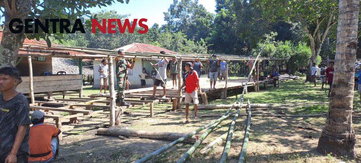 Babinsa Karera Bantu Warga Mendirikan Tenda Acara Adat