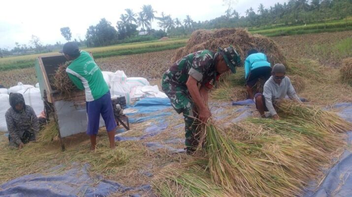 Babinsa Kawal Ketahanan Pangan, Turun Langsung Bantu Petani Panen Padi