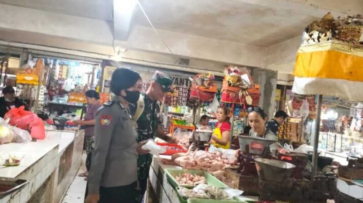 Gentra.co.id Bangli – Menjelang Hari Raya Galungan yang jatuh pada Rabu, 23 April 2025, Babinsa Kelurahan Kawan, Sertu Wayan Budiarta dari Koramil 01/Bangli, Kodim 1626/Bangli, mengambil peran aktif dalam menjaga stabilitas wilayah binaannya. Babinsa melaksanakan kegiatan pemantauan dan pembinaan teritorial melalui komunikasi sosial dengan para pedagang bertempat di Pasar Kidul Bangli, Kelurahan Kawan, Kecamatan Bangli. Minggu (13/04/25).