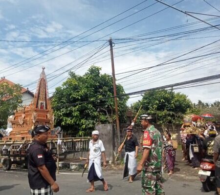 Babinsa Kel. Subagan Koramil 1623-01/Karangasem Peltu I Komang Pujawan bersinergi melaksanakan pengamanan upacara Pitra Yadnya (Ngaben), di Jln A. Yani Lingk Galiran Desa Adat Jasri Kel. Subagan Kec/Kab. Karangasem, pada Jumat siang (09/05/25).