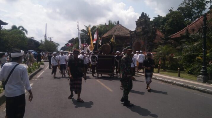 Dalam rangka mendukung ketertiban dan kelancaran pelaksanaan upacara adat, Babinsa Kelurahan Ubud Koramil 1616-02/Ubud Serda I Ketut Budiawan bersama Bhabinkamtibmas Kelurahan Ubud Aiptu I Nyoman Sedana dan Pecalang Desa Adat Padangtegal melaksanakan kegiatan pengamanan serta pengaturan arus lalu lintas. Kegiatan ini digelar sehubungan dengan prosesi mendak sesuhunan Adat Ubud dan Peliatan, yang merupakan bagian dari rangkaian Karya Padudusan Agung, Mendem Pedagingan, Ngenteg Linggih, dan Ngusaba Nini di Pura Puseh lan Desa Adat Padangtegal, Kelurahan Ubud, Kecamatan Ubud, Kabupaten Gianyar.