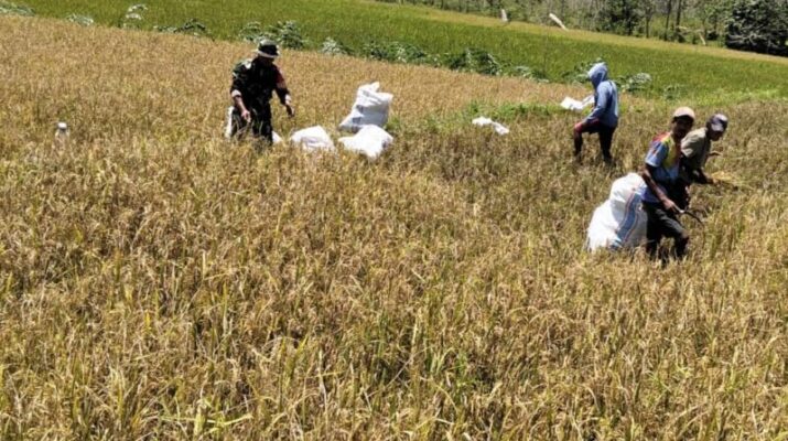 SUMBA BARAT – Babinsa Koramil 01/Loli Kodim 1613/Sumba Barat, Sertu Juaqim Da Costa, melaksanakan kegiatan pendampingan kepada warga masyarakat dalam panen padi di Desa Binamora, Kecamatan Loli, Kabupaten Sumba Barat, Selasa (30/9/2025).