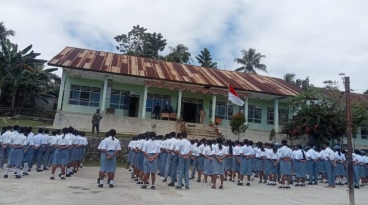 Babinsa Koramil 1621-04/Amanatun Utara, Kopda Yohan Alexander Nokas, dan siswa SMA Negeri Santian di SMA Negeri Santian, Kec. Santian.