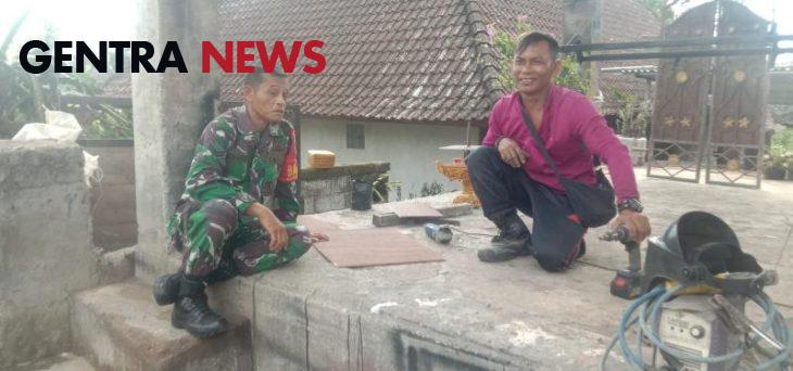Babinsa Komsos Bersama Masyarakat Yang Berprofesi Sebagai Tukang Las Pembuat Pintu Pagar dan Kanopi