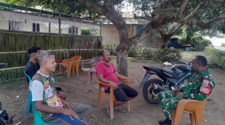Ende, Babinsa Koramil 1602-04/Maurole, Koptu Mohamad Samin, melaksanakan kegiatan Komunikasi Sosial (Komsos) dan Pengamanan Wilayah (Pamwil) di Desa Rangalaka, Kecamatan Kota Baru, Kabupaten Ende, Senin pagi (20/10/2025).