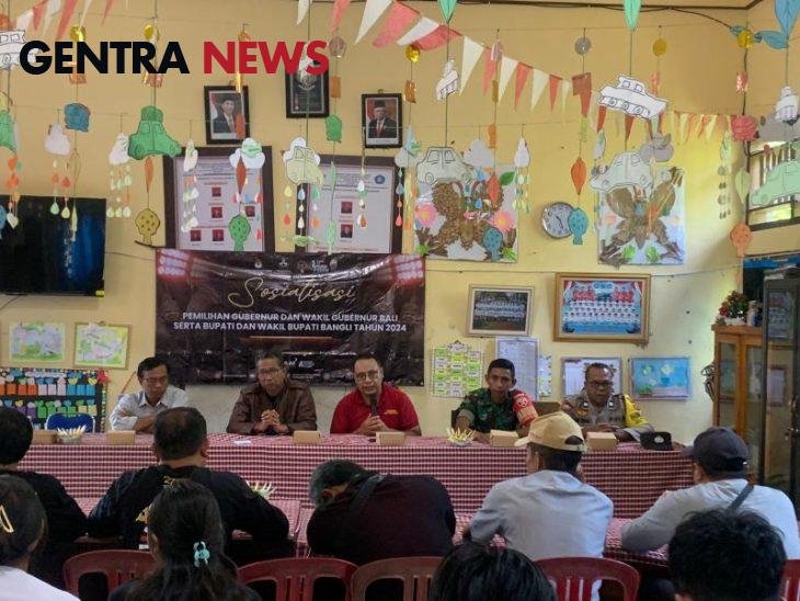 Gentra News Bali, Bangli – Serda I Wayan Mahendra Babinsa Desa Penglumbaran Koramil 02/Susut Kodim 1626/Bangli menghadiri kegiatan sosialisasi Pilkada serentak tahun 2024 bertempat di Aula Kantor Desa Penglumbaran, Kecamatan Susut, Kabupaten Bangli, Minggu (27/10/24)