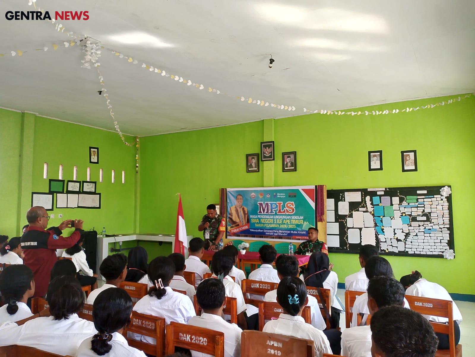 Gentra News NTT – Lembata, Babinsa Koramil 1624-03/Lewoleba Kodim 1624/Flotim Serda Aprinto R.S.N dan Praka Ahmad yusuf memberikan materi kepada peserta didik Baru SMAN 1 Ile Ape Timur di Desa Lamaau Kecamatan Ile Ape Timur, Kabupaten Lembata. Jumat (19/07/2024).