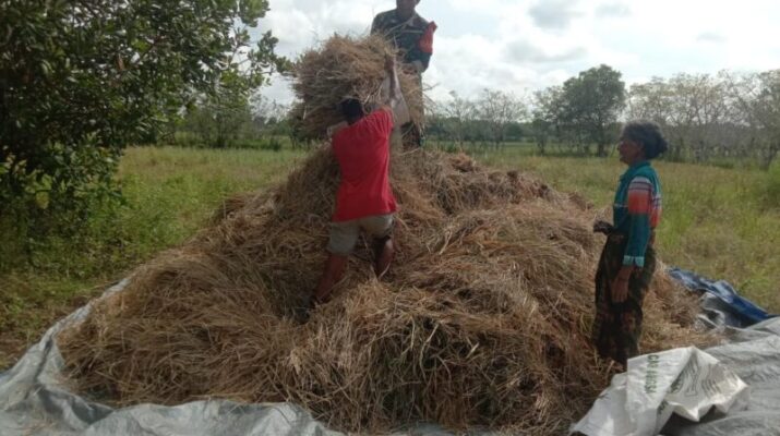 Dalam kegiatan tersebut, Pratu Anton Ndima tidak hanya memastikan kondisi keamanan dan ketertiban wilayah, tetapi juga turun langsung membantu masyarakat yang sedang melakukan proses panen padi. Ia turut serta dalam mengumpulkan padi yang telah dipanen untuk kemudian dirontokkan menggunakan mesin perontok padi.