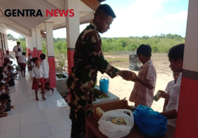Dalam rangka mendukung program perbaikan gizi anak-anak di wilayah binaan, Babinsa Koramil 03/Pahunga Lodu Kodim 1601/Sumba Timur,Pratu Antonius Ndima membagikan PMT (Pemberian Makanan Tambahan) berupa telur rebus dan susu ultra milk bagi anak-anak di SDN Laiwahi di Desa Tamma, Kecamatan Pahunga Lodu Kabupaten Sumba Timur ,Rabu (09/10/2024).
