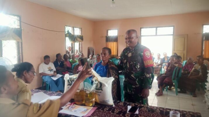 NTT, Sikka – Babinsa Desa Iantena, Koramil 1603-04/Kewapante, Kodim 1603/Sikka Pelda La Ngkawea melaksanakan pendampingan penyaluran Bantuan Sosial (Bansos) Ketahanan Pangan untuk bulan November dan Desember 2025. Kegiatan berlangsung di aula Kantor Desa Iantena, Kecamatan Kewapante, Selasa(09/12/2025).