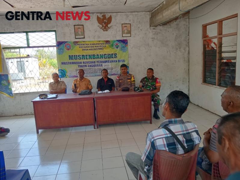 Gentra News NTT – Ende/Maurole, Dalam rangka Pembahasan dan Pengesahan Rencana Kerja Pemerintah Desa (RKPDes) Tahun Anggaran 2025, pemerintah Desa Keliwumbu menggelar Musrenbangdes bertempat di Aula Kantor Desa Keliwumbu Kecamatan Maurole Kabupaten Ende, dimana dalam kegiatan tersebut turut hadir Serda Donatus Kiri Babinsa Kecamatan Maurole Anggota Koramil 04/Maurole.