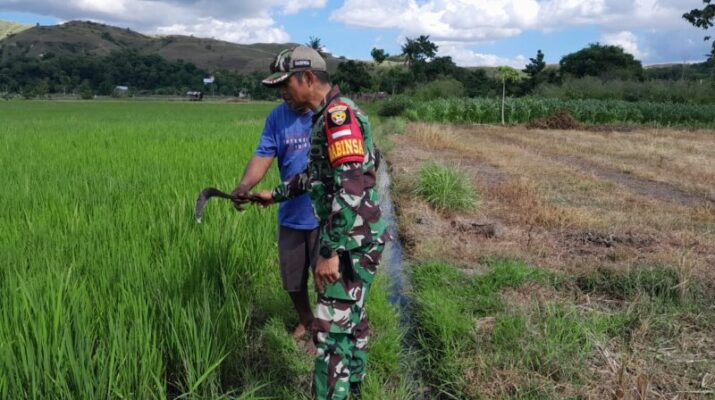 Gentra.co.id –NTT – Sumba Timur,Babinsa Koramil 05/Waingapu, Kodim 1601/Sumba Timur, Sertu M. Ali melaksanakan pengecekan hama padi di lahan sawah tadah milik warga binaan Kelurahan Malumbi, Kecamatan Kambera, kabupaten Sumba Timur, Jum’at (16/05/2025). Kegiatan ini merupakan bagian dari pendampingan yang dilakukan Babinsa sebagai bagian dari tugas pokok dan UPSUS (Upaya Khusus) pertanian.