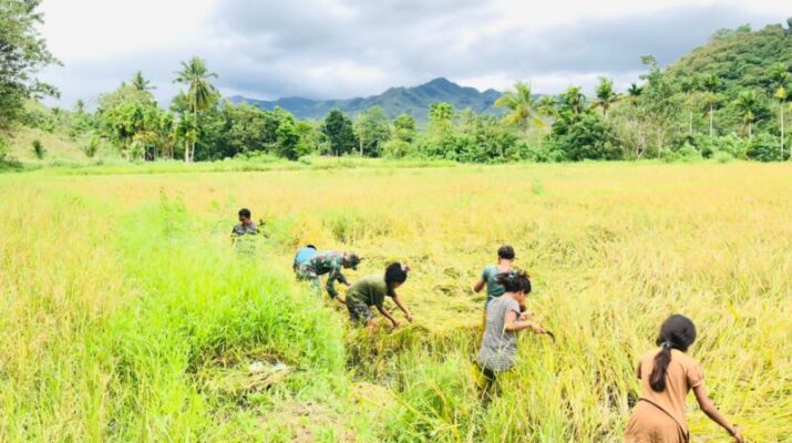 Pratu Hezron Wora turun langsung ke sawah bersama para petani untuk membantu proses panen, sebagai bentuk dukungan TNI AD kepada masyarakat dalam meningkatkan hasil pertanian dan menjaga ketahanan pangan di wilayah. Kehadiran Babinsa juga memberikan motivasi kepada petani agar tetap semangat dalam mengolah lahan pertanian.