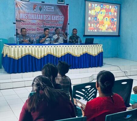 Kegiatan tersebut dihadiri oleh perangkat desa, BPD, tokoh masyarakat, serta perwakilan kelompok warga. Musyawarah ini bertujuan untuk memperkuat ekonomi masyarakat melalui pembentukan koperasi desa sebagai wadah usaha bersama yang dikelola secara transparan dan berkeadilan.