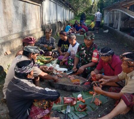 “Kami hadir menyatu bersama warga dalam suasana kekeluargaan untuk melaksanakan kegiatan ngayah. Kehadiran Babinsa bukan hanya sebagai bentuk dukungan pada kegiatan adat dan budaya, tetapi juga untuk mempererat hubungan dengan masyarakat sekaligus menjaga kondusifitas wilayah,” ujar Sertu I Nyoman Lemuh.
