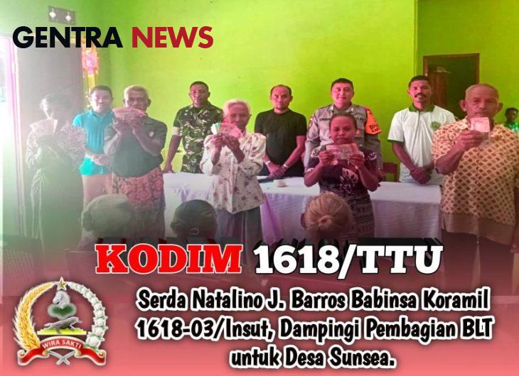 Gentra News NTT-KEFAMENANU, Sebagai bentuk komitmen TNI dalam mendampingi masyarakat, Babinsa Koramil 1618-03/Insut, Serda Natalino J. Barros, menghadiri kegiatan pembagian Bantuan Langsung Tunai (BLT) tahap 3 dan 4 di Kantor Desa Sunsea, Kecamatan Naibenu, Kabupaten Timor Tengah Utara (TTU), pada Jumat (22/11/2024).