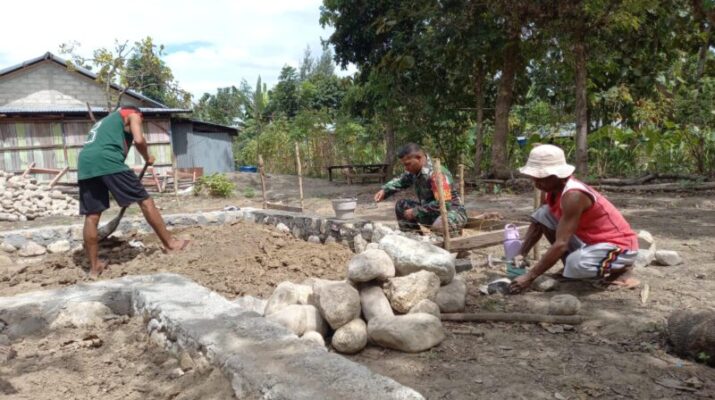 NTT – KEFAMENANU, Kamis, 16 Oktober 2025-Dalam upaya mendukung pembangunan di wilayah pedesaan, Babinsa Koramil 1618-06/Bian, melaksanakan kegiatan karya bakti bersama masyarakat setempat di Desa Ponu, Kecamatan Biboki Anleu, Kabupaten Timor Tengah Utara (TTU)