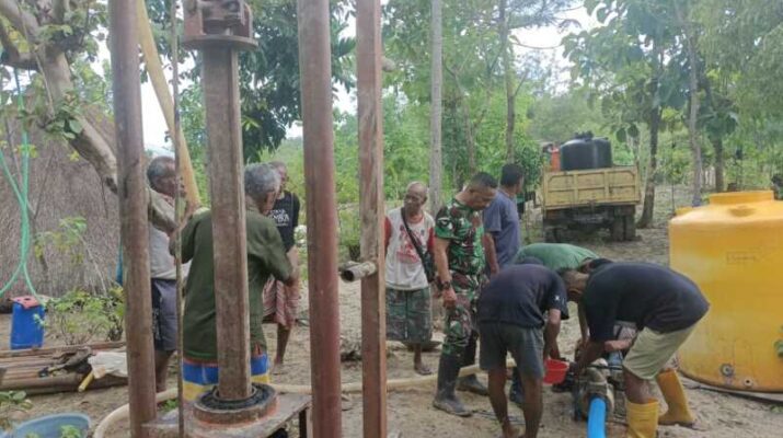 Gentra.co.id TTS – Mengatasi permasalahan air bersih di desa Oel’ekam Kecamatan Mollo Tengah TNI AD berupaya untuk mencukupi kebutuhan air bersih melalui Program TNI Manunggal Air dengan pembuatan Sumur bor Di Desa Oel’ekam
